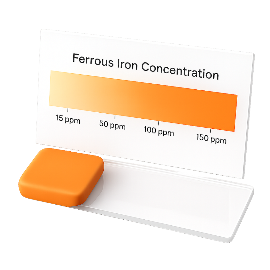 This field-friendly kit provides visual confirmation of ferrous iron concentration in minutes. Ferrous iron concentration increases may indicate a change in corrosion rates occurring in the system that should be monitored by Chemi-Sense.